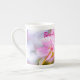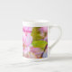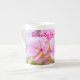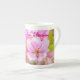 Visão macro de um monte de flores de maçã rosa. Árvore de maçã em floração de cheio. O fundo desfocado dá a impressão de vento suave e jogo de luz e sombras. Você pode até ouvir uma palpitação das folhas. Motivo de primavera cor rosa. Caneca de café. Você pode alterar ou excluir o texto Beleza na floração