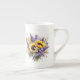 This lovely bone China mug is shown in white with a pretty floral sunflowers and lavender watercolor print.