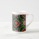Uma Caneca Chic Bone China Coffee, com um Padrão Floral Rangoli colorido num Fundo Negro. Parte da coleção Posh & Painterly 'Rangoli', este padrão irá ajustado qualquer caneca.