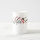 Texto gráfico, criado com uma palavra carinhosa, familiar, "Mãe", que é projetada em cores brilhantes, cursivas e brilhantes de fonte; salmão, azul, cinzas, rosa, verde, amarelo, castanho e branco.