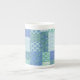 Uma Caneca China Chic Boho Bone, com uma Patchwork Faux estilo country de várias florais bonito do Periwinkle e coordenando padrões Check Gingham em Azul, Verde e Branco. Parte da coleção Posh e Painterly 'Periwinkle Patch', este padrão pode ser facilmente ajustado para ajustado qualquer Mug.