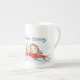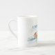 Esta caneca tem uma ilustração de um filhote fofo e seus pais, um homem careca e uma mulher morena. Você pode personalizar o texto.