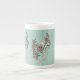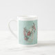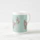 Esta linda caneca da China óssea é agarrada com a pintura digital original de Leslie Sigal Javorek que emula o olhar de uma tradicional cena chinesa de Cherry-Blossoms e pássaros graciosos pintados manualmente na seda.