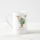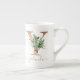 Esta mão de férias pintou pinheiro de aquarela botânica com bagas vermelhas com letra falsa de ouro Y osso china caneca caneca também tem um nome personalizado em um guião moderno, escrito à mão de ouro, correspondente, abaixo do original. Faz um presente encantador para aquela mulher especial na sua vida de Natal. Desenhada por Susan Coffey.