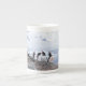 Um grupo de Pinguins Gentoo em frente a montanhas de neve. A imagem foi tirada na Antártica.