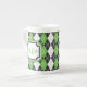O Argyle retro 8 bits com este esquema verde, cinza, branco e preto que escuta os jogos de jogos de fliperama da antiga escola. Personalize o monograma com as iniciais apropriadas para um toque personalizado. Esta caneca está disponível em jumbo, espresso e tamanhos e estilos de porcelana óssea.