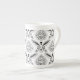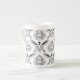 Caneca De Porcelana Rococo Damask Line Pattern Black on White