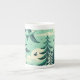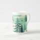 Caneca De Porcelana Teal Green Forest e Birds
