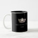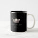 Um impressão de prata brilhando da coroa poised a parte dianteira e o centro em cada lado desta caneca do café/cacau. Mostrado em uma caneca preta & branca com um texto cinzento interior e coordenando preto. Personalize seu interior e personalize o texto da amostra ao seus próprios. Mostrado como a senhorita Hamilton 2018.