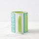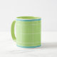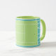 Caneca de café criativa com tema de tênis, apresentando bolas de tênis em uma quadra de tênis verde. Para personalizar, edite o texto para adicionar o nome do seu jogador de tênis favorito, treinador ou amante de esportes.
