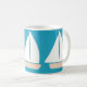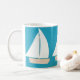 Esta clássica caneca branca foi desenhada com a minha representação de três veleiros brancos num fundo de turquesa.