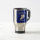 Esta caneca de viagem impressa tem o logotipo para o metal dos caçadores da história de Staten Island que detecta o clube. O estilo do logotipo é moldado com cantos arredondados.
