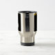 Uma caneca de viagem com uma fotografia de um alfinete.