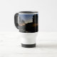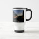 Caneca de viagem com foto do pôr do sol com pinos
