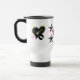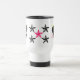 Caracteriza um coração da rocha da zebra, em cada lado com as estrelas cor-de-rosa e pretas no meio no design branco da caneca de viagem criado pelo design do jazz de Paris e pelo Rabecca Primeau