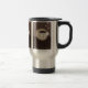 Caneca de viagem com um design delicioso. A palavra "café" faz a forma de uma caneca e corações flutuam em torno de ondulações de mocha, latte, cappuccino, macchiato, espresso e americano. Excelente para qualquer amante de café.