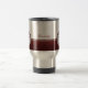 Aproveite seu café matinal em movimento com esta caneca de viagem de design contemporânea com uma borda vermelha escalpada e emblema de libélula. O texto personalizável permite alterar fontes, alterar cores e tamanhos de texto conforme desejar. Personalize você mesmo ou faça um presente de excelente.
