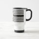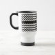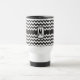 Uma Caneca de viagem branca na moda para você personalizar, com um padrão ziguezague de cavaleiros negros e brancos em tendências. Se preferir a caneca de viagem sem uma inicial, você pode personalizá-la facilmente, excluindo o texto inicial (texto) e movendo o padrão de gavão para cima até que a área de texto simples desapareça.