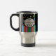 A caneca de viagem da enfermeira, o "café e o relativo à partícula ínfima engraçados de E-Coli que caiu do meu esfregam", listras brilhantemente coloridas e bolinhas coloridas de harmonização em um fundo preto. Para trazer Sure um riso. Presente perfeito para enfermeiras e médicos gastrintestinais.
