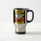 Caneca de viagem, "café e sedimentação engraçados" do geólogo. Design abstrato artística no ouro da laranja e do girassol em um fundo preto. Aperfeiçoe para a graduação do geólogo.