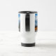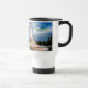 Uma caneca branca mostrada com uma impressão de foto de um gênio no Parque Yellowstone. Imagem do stock