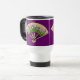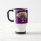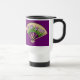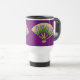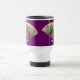 Esta caneca de viagem japonesa bonita da arte do fã caracteriza as flores e os botões roxos da íris com folhas verdes. São ajustados contra o contexto de um fã de madeira e parecidos ser 3-D, quase como uma escultura de papel. O resultado é uma caneca elegante, colorida que represente agradàvel o design japonês da flor.