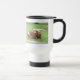 Caneca de viagem personalizável com uma fotografia Longhorn e um verso inspirador.