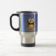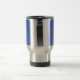 Aproveite seu café da manhã em movimento com esta design de caneca de viagem fofa com um fundo azul-damasco de safira enfeitado com um pinguim enrolado. O texto personalizável permite alterar fontes, alterar cores e tamanhos de texto conforme desejar. Personalize você mesmo ou faça um presente de excelente.