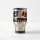 caneca de viagem prateada de 15oz/cambaleador. Logotipo 45 48 com fundo de bandeira dos EUA. Mostre seu apoio patriótico ao homem que se mostrou à prova de balas contra a tirania.