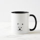 É uma caneca de café, com um amigável, pequeno, cão nele.
