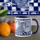 Esta caneca apresenta um dos meus murais de azulejo de coelho Dedham Blue Bunny, inspirado pelas antigas mariposas e cores Dedham e Delft. Um belo coelho coelho morde um buquê de flores margaridas, com bordas de coelho. O fundo tem um visual de vidro de crack antigo. Este eterno e o olhar popular é perfeito para quem ama coelhos, animais e natureza. Arte e design originais peculiares, únicas, de Tuzi Williams.