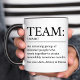 O Design de Definição de EQUIPE é um design personalizado e brincalhão que celebra o trabalho em equipe e a colaboração. É perfeito para eventos de construção de equipes, comemorações de escritórios, ou para mostrar apreço pelos colegas. É perfeito para ideias de presentes, presentes de equipes esportivas, e presentes de grupo, destacando as conquistas e o espírito da equipe.