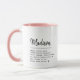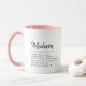 Diga a sua melhor amiga como a conhece com esta caneca de definição de nome super doce e legal! Ela adora café? Ela é uma fã de zumbis? Um tricô devotado? Diga a ela o que a torna especial em seus olhos com esta imagem moderna chamada caligrafia em preto-na moda e branco a rosa (ou qualquer outra cor interior que você escolher entre as opções).