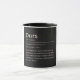 Capture a personalidade do seu animal de estimação com o hilário e único design de dicionário de Apelidos de animais de estimação. Apresentando o nome do animal de estimação, uma pronúncia fonética e uma definição engraçada e personalizada escrita pelo proprietário (por exemplo, um pequeno tirano peludo que exige esfregões de barriga). Esta arte no estilo do dicionário faz um presente fantástico e personalizado para mães de cães, pais de gatos, ou qualquer um que ama seu companheiro peludo.