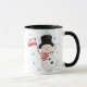 Esta é uma engraçada caneca com tema de inverno, apresentando um boneco de neve dançando na neve vestindo um chapéu e cachecol, com as palavras "Deixe-a nevar". Dê-lhe esta caneca sozinha ou encha-a com chocolates, doces ou outros favores e embrulhe-a em celofane com arcos.
