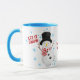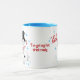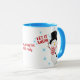Esta é uma engraçada caneca com tema de inverno, apresentando um boneco de neve dançando na neve vestindo um chapéu e cachecol, com as palavras "Deixe-a nevar". Dê-lhe esta caneca sozinha ou encha-a com chocolates, doces ou outros favores e embrulhe-a em celofane com arcos. O texto na frente da caneca é personalizável com o seu ou pode ser deixado como está.