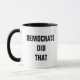 DEMOCRATAS FIZERAM ISSO em negrito, texto preto na frente da caneca. Uma lista de apenas algumas das realizações feitas quando democratas estão no comando: Semana de 5 dias de trabalho (1926 Henry Ford), Segurança Social (1935 FDR), Lei dos Direitos Civis (1964 LBJ), Medicare (1965 LBJ), Controlos nos nossos bolsos, vacinas COVID que vão de 2% a 80+%, pobreza infantil cortou ao meio (20222222022210222002200000000 iden)