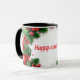 Design festivo para as festas, centrado em torno de um espaço em branco que é perfeito para adicionar texto ou mensagens. A borda é adornada com folhas de azevinho verdes vibrantes e frutos vermelhos brilhantes, criando uma aparência natural e alegre. Elementos decorativos como ornamentos vermelhos e doces de hortelã-pimenta espiralados adicionam um toque lúdico. O fundo consiste em listras diagonais vermelhas e brancas, reforçando o tema tradicional das festas. Em geral, a composição evoca uma atmosfera calorosa e alegre, adequada para o Natal ou outras celebrações de inverno.