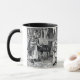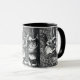 Esta caneca para o seu café ou chá tem três ilustrações pretas e brancas vintage do conto de fadas Red Riding hood. Uma com capuz vermelha com o lobo, uma com sua mãe avisando-a para não falar com estranhos e uma com ela parando na floresta para pegar flores.