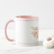 Esta linda caneca personalizada apresenta flores de aquarela em cor rosa pastel e cor de pêssego com folhas verdes e azuis/cinzas sobre fundo branco. Personalize-o clicando no botão "Personalizar" e adicione seu próprio nome, altere o estilo da fonte, o tamanho da fonte e a cor da fonte, conforme desejar. Ideia perfeita de presente para uma pessoa romântica.