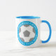Uma caneca de futebol para um adepto de futebol ou fã de um clube de futebol. Azul claro ou azul-claro e branco.