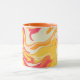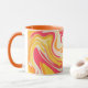 Este design apresenta um padrão abstrato com cores quentes e vibrantes, incluindo tons de laranja, amarelo, rosa e bege. A composição parece um movimento fluente, circular ou giratório, evocando um senso de energia e vivacidade. Ela se assemelha aos padrões tortuosos encontrados na natureza ou ao movimento de líquidos.