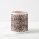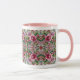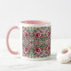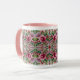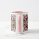 Esta é uma caneca que tem um design de vidro manchado com flores cor-de-rosa.