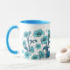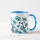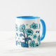 Design Floral Elegante Azul Moderno Mug Duas Tons Azuis, Design Floral Livre, com Traço Negro para unir o design, Flores Elegantes, folhas e caules, reunindo a sensação da Época do Jardim, ao redor da esquina. Aproveite suas Aventuras compradas! Artista Tanya Arseneau Nanniesfineart
