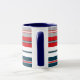 Design de temas náuticos com decoração em forma de monograma, em forma redonda, sobre fundo azul, branco, vermelho e cinza listrado