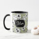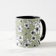 Flores anêmonas brancas e pretas contra fundo verde fresco. Celebre a mãe desta Dia de as mães com esta elegante caneca personalizada!