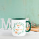 É uma bela camada verde-aquática verde-floral verde MELHOR, NUNCA, caneca de café em dia de as mães. Esta caneca floral é perfeita para presentear sua mãe no dia de as mães ou no aniversário dela. Você pode oferecer a mães novas. Personalize o texto e a data com apenas alguns cliques.