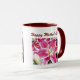 O presente de excelente para o Dia de as mães é esta caneca com um fecho de uma flor magenta esargazer Lily tirada de um boquete.