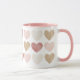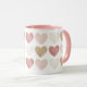 Ofereça a um amado na sua vida esta linda caneca de café de duas tonalidades, com corações aquosos em tons cor-de-rosa, ouro e creme.