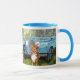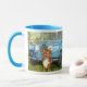 Caneca azul da campainha com imagem JackCrisp.co.uk dos amigos do "fazendeiro repetido "de uma pintura original por GJLC